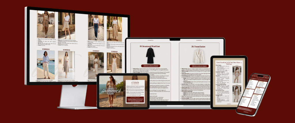 Inside, you’ll master the visual codes of quiet luxury: the texture that communicates sophistication, the cut that elongates, the palette that balances.